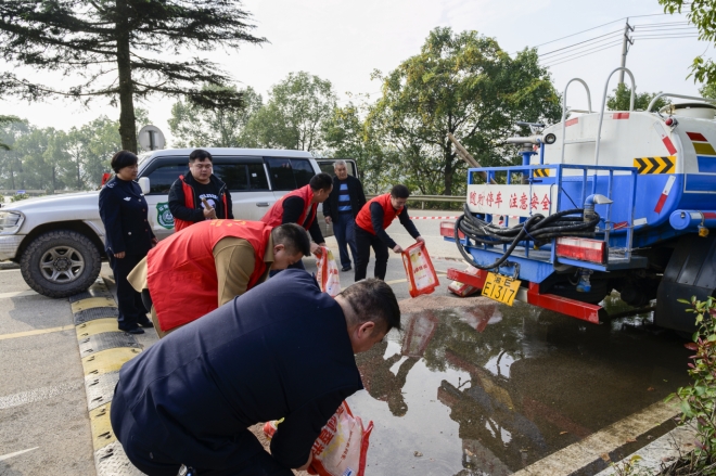 为进一步增强邵东市饮用水源突发环境事件的应急管理和处置能力,11月19日上午,邵东市在S336桐江二桥开展了2021年邵东市突发生态环境事件应急演练。邵阳市生态环境局、邵阳市邵东生态环境保护综合行政执法大队、邵阳市邵东生态环境监测站、交警大队、周官桥乡人民政府、邵东市飞鹰应急救援队等单位联合参演,现场参加人数约60人。